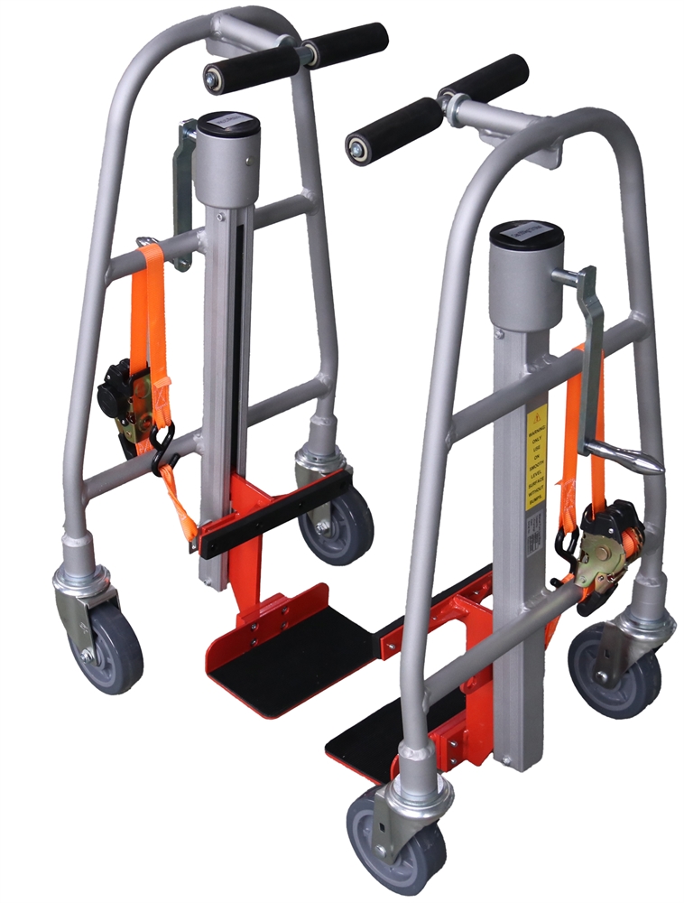 The DJD55 twin hand truck transports loads of up to 550 kg, with a maximum lift of 320 mm. Ideal for moving bulky furniture with reduced effort, this lifting hand truck is fitted with a crank handle. Its structure is made of aluminium. It is supplied as standard with load securing straps.