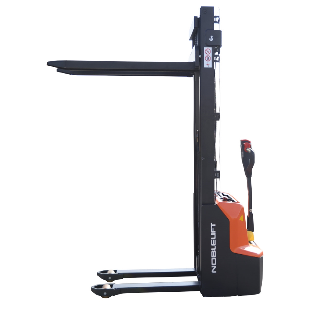 The PSE13BPRO electric stacker lifts 1,300 kg for warehouse storage operations. Its compact design, high free lift, and ergonomic tiller secure manoeuvres and reduce daily effort. Supplied with a standard AGM battery.
