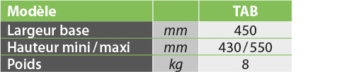 • Le réglage est possible en hauteur : 430 mm au minimum pour 550 mm au maximum