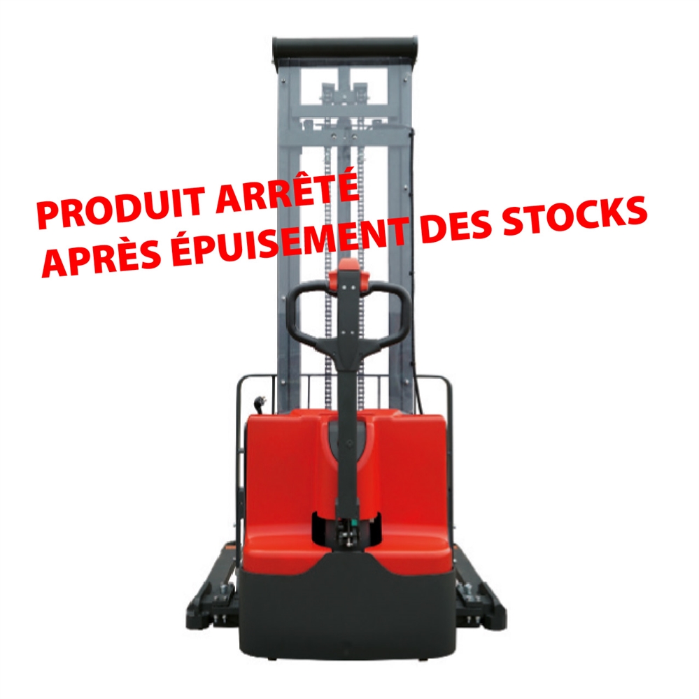 PRODUIT ARRÊTÉ - Gerbeur électrique à conducteur accompagnant avec longerons encadrants 3200 mm 1000 kg
