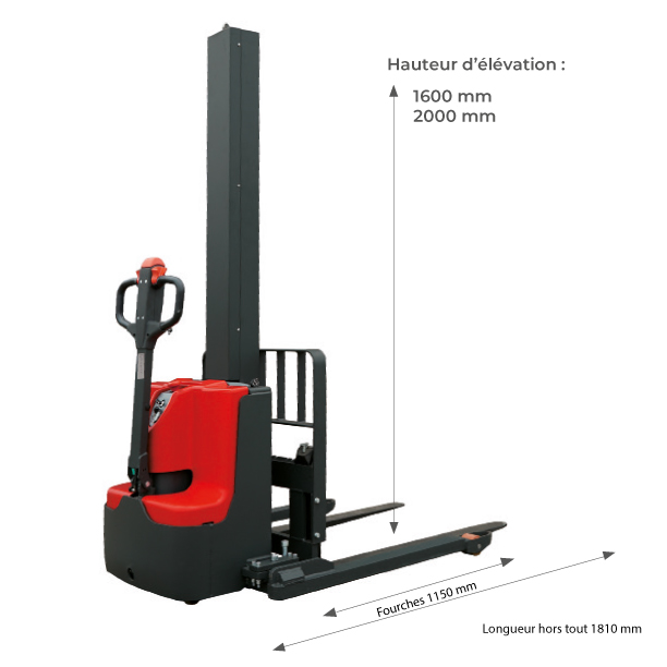• Levée libre : 1530 mm (PSE10MSL1600) et 1930 mm (PSE10MSL2000)