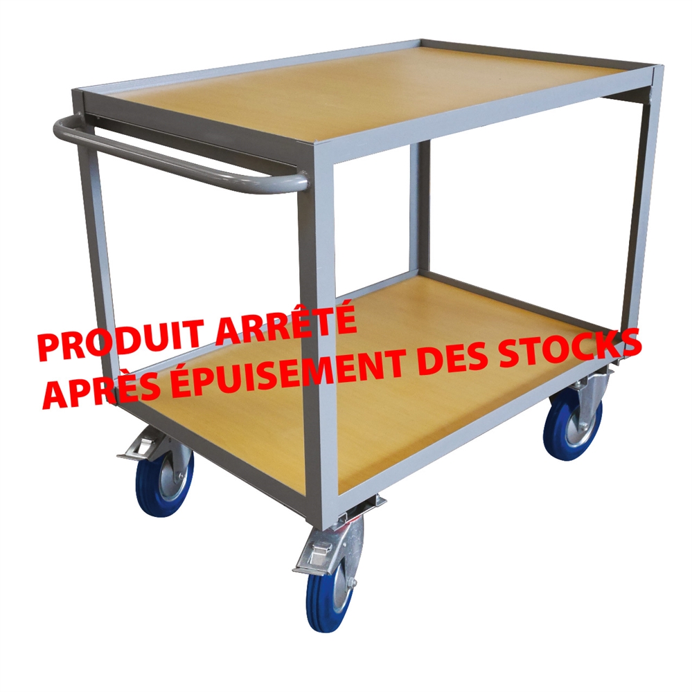 PRODUIT ARRÊTÉ - Cette servante d'atelier en bois est disponible en capacité de 300 et 500 kg. Construction robuste et plateaux en MDF de 14 mm d’épaisseur. 4 roues dont 2 pivotantes à frein.